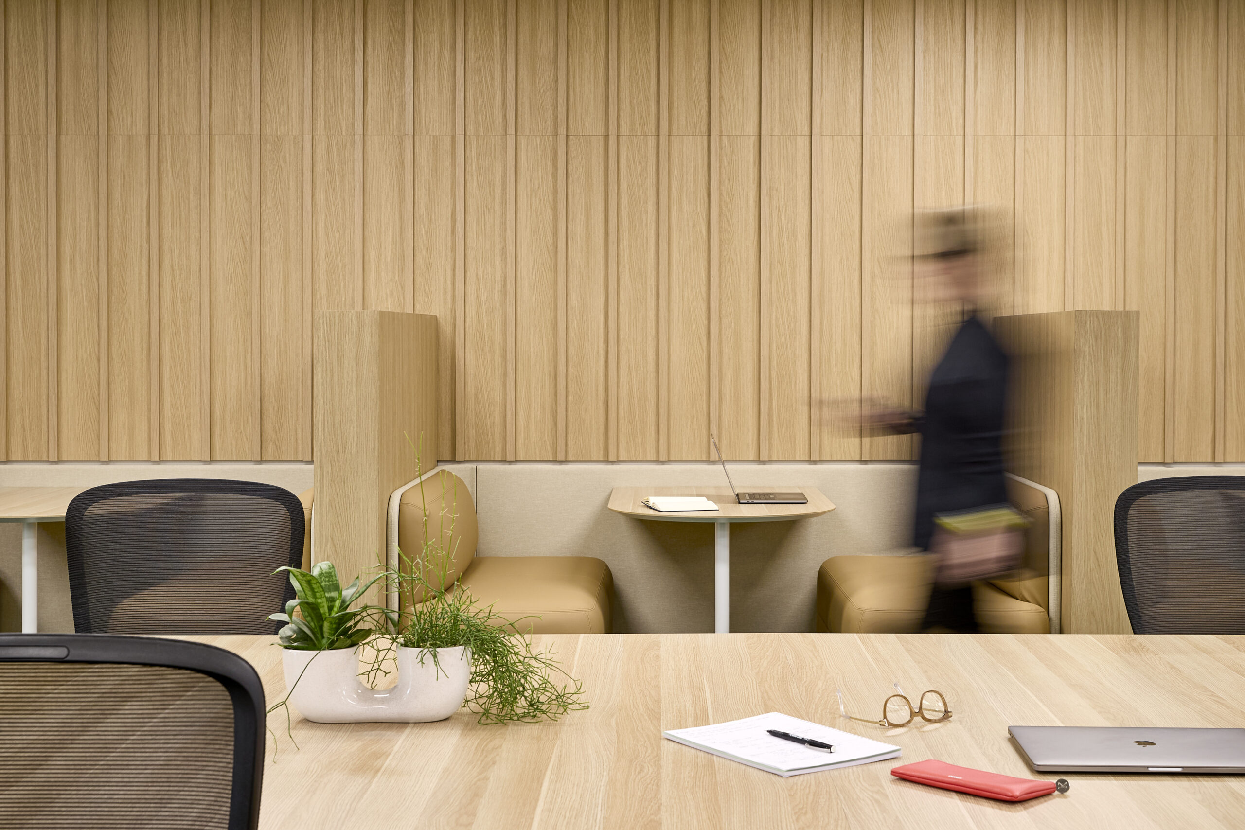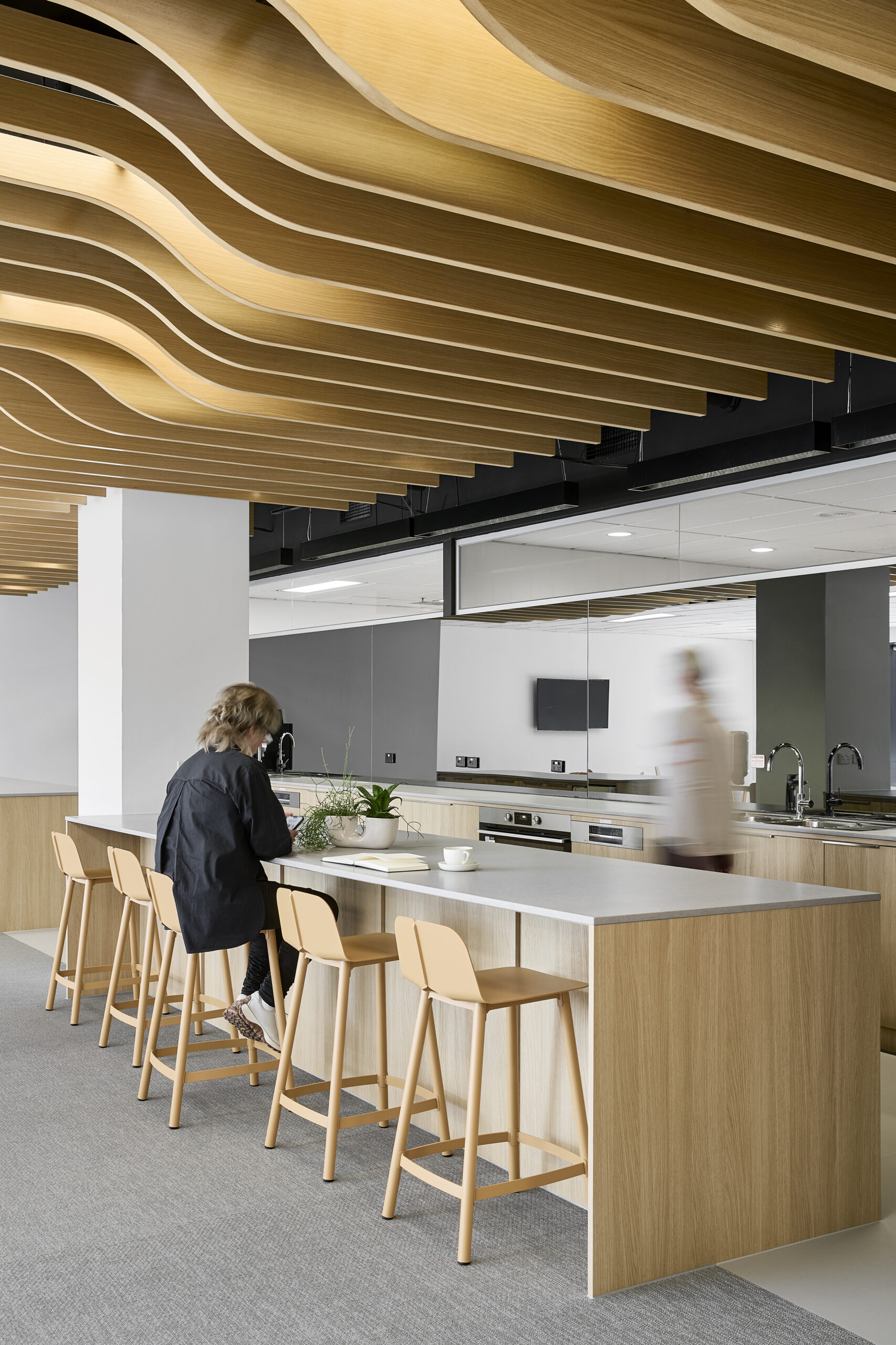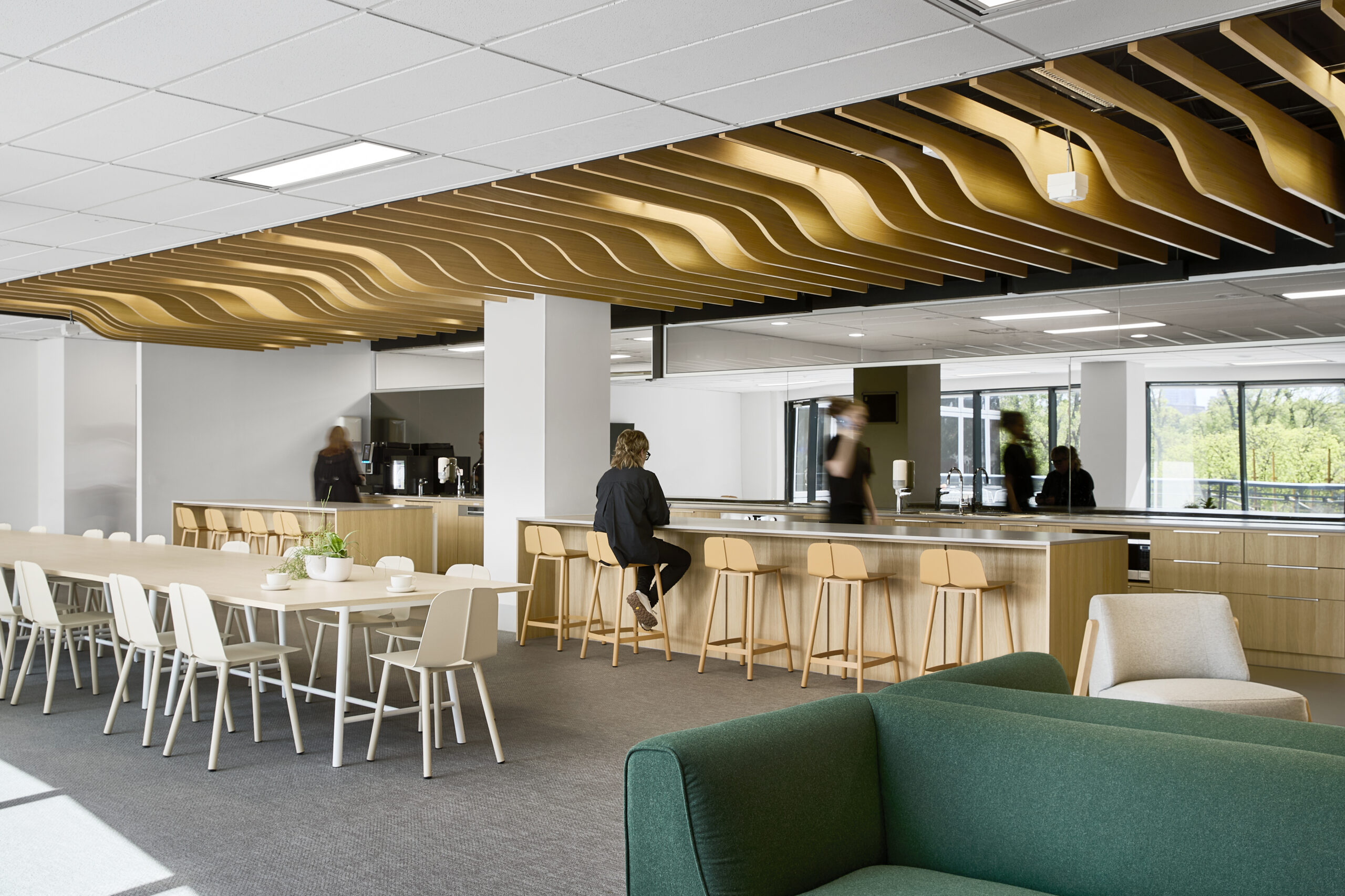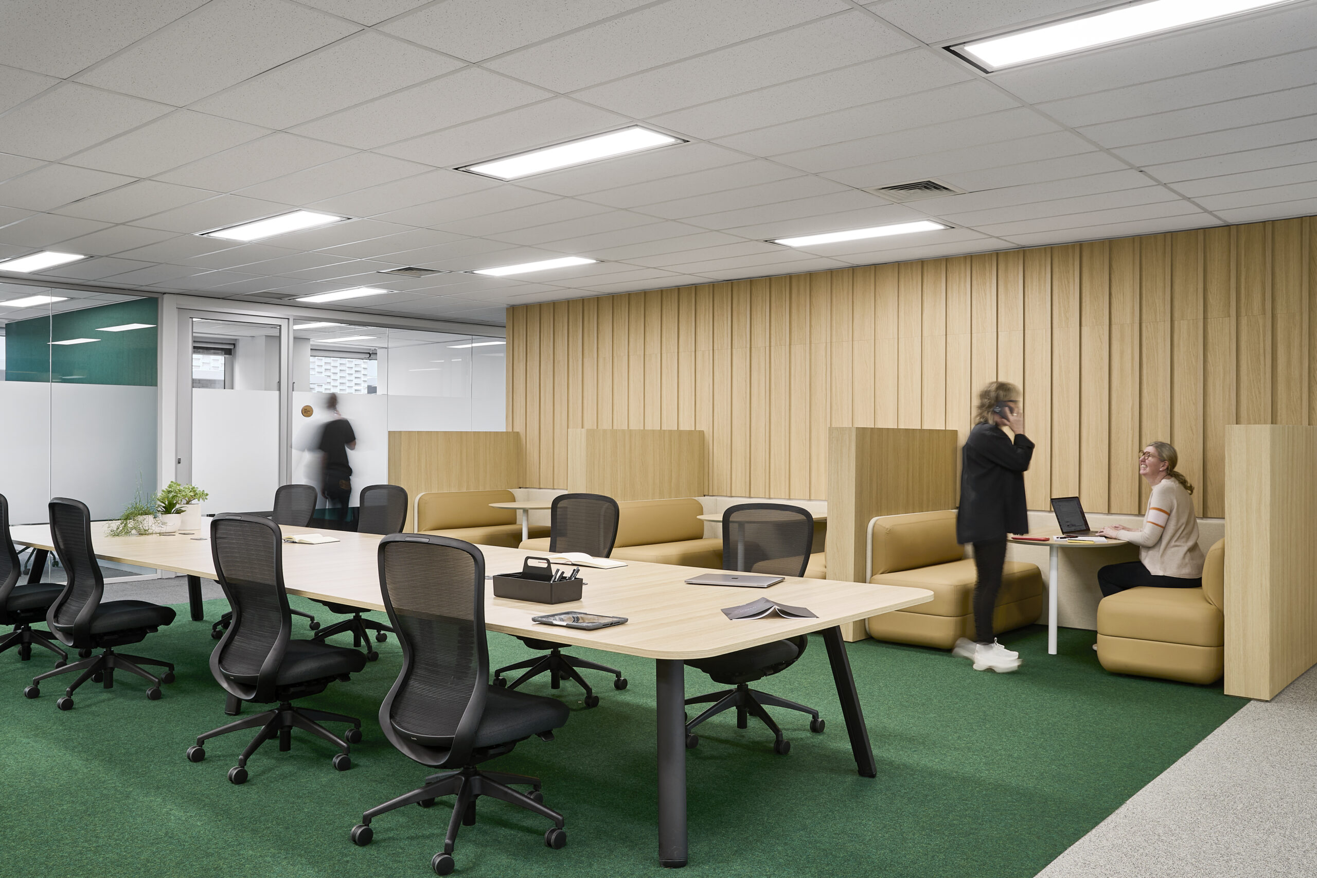 A greater appreciation for personal wellbeing was a focus and the design underpinned by healthy work initiatives like sit to stand desks, plants, good accesses to natural light and spaces for personal respite, prayer, and for parents.
